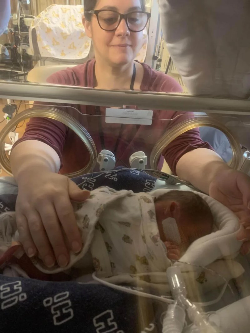 Because of their breathing difficulties, their tiny, fragile bodies, and additional health struggles that included a life-saving surgery for Ari, even Sarah and her husband, Ang, are rarely able to hold their sons.