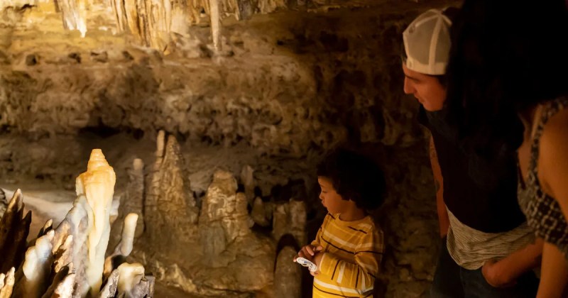 The cave’s hour-long guided tours are gone, replaced by self-guided tours that wind two-thirds of a mile 40 to 70 feet below ground. Railings along the way guide the figure eight route that has just one entry/exit.