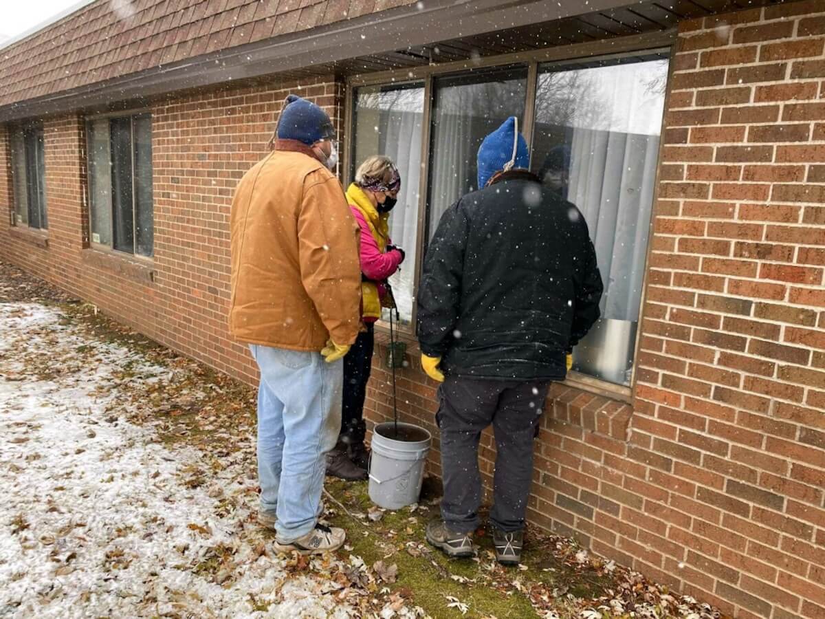 Not being able to meet in person was especially difficult for Bette. She worried about him and longed to be able to give him a hug. She sat on a chair outside his window, conversing as best she could with her husband.