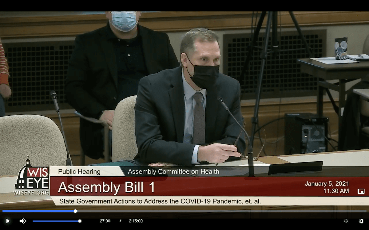 The Assembly Health Committee, which is chaired by a Republican, did not allow members to participate virtually. Consequently, Democratic members signed in and returned to their offices to watch the proceedings on WisconsinEye. Republican members frequently removed their masks during the proceedings.