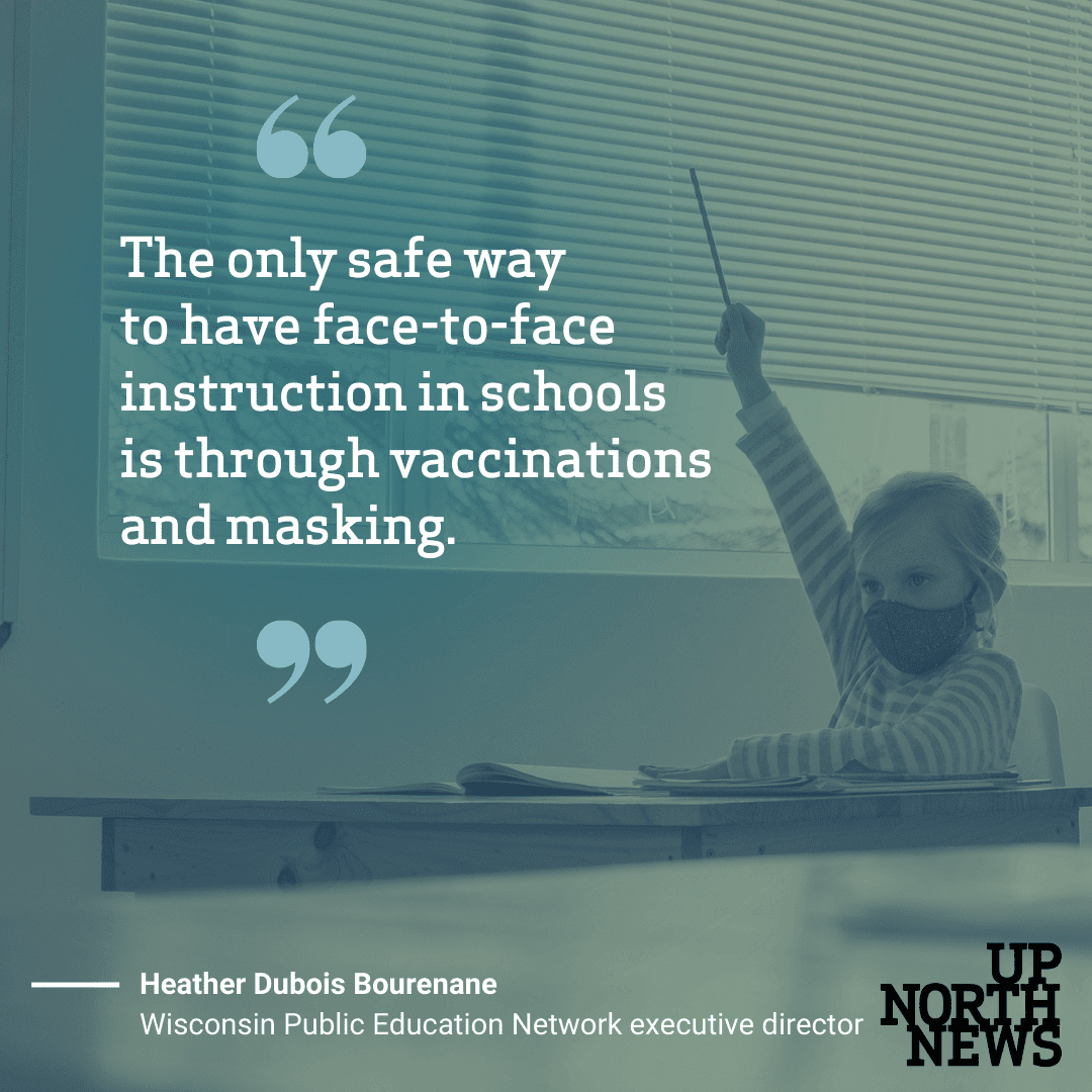 Throughout the summer and early school year, Heather Dubois Bourenane, executive director of the Wisconsin Public Education Network, said she has heard from school leaders across Wisconsin seeking state leadership on addressing COVID-19 measures. She has watched with frustration as debate about wearing masks in schools and other COVID-19 mitigation measures has become politicized rather than being based on medical professionals’ recommendations.