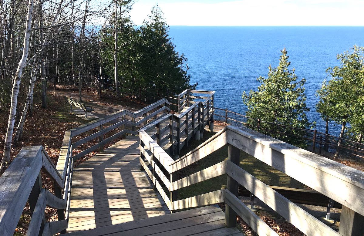 This one-mile wide peninsula juts into Lake Michigan between Bailey’s Harbor and Moonlight Bay. It was once a limestone quarry, and the trail will take you from a deep boreal forest of hemlocks and spruce, along a marsh, past a historic lime kiln, and out to the wave-carved limestone shelves and cliffs along Lake Michigan.