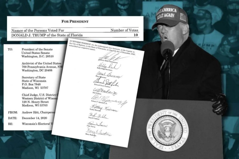 But the 2020 presidential election was anything but typical. Republicans in seven states Donald Trump lost, including Wisconsin, convened to fill out official-looking paperwork declaring him—not Joe Biden—the winner. Then, they sent those fake documents to Congress.