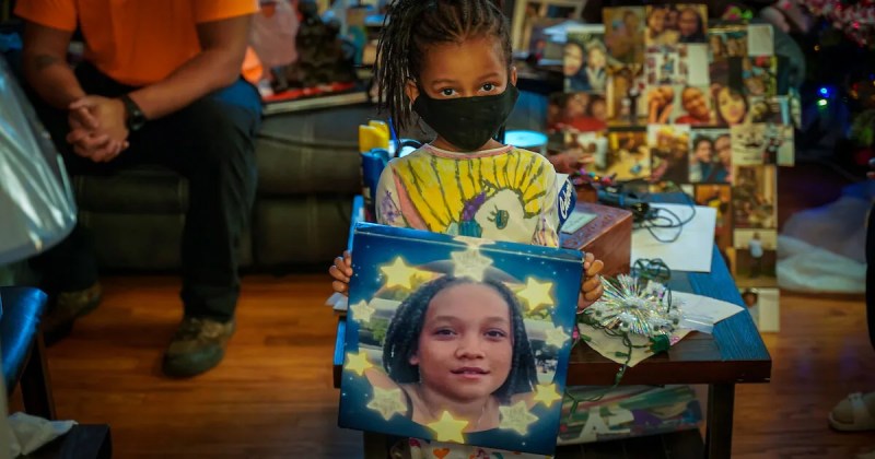 The depth of the entire family’s loss and the lingering toll of gun violence becomes clear when Anisa’s 6-year-old sister, Anija Ragland, walks toward GG sitting on the couch, a 12-by-12-inch canvas photo of her sister clutched in her hands.