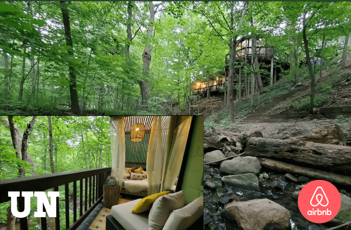 Located only three miles from the beach off Lake Michigan, this amazing property sleeps five–making it perfect for both couples and families. This treehouse is a private apartment that is part of a split-level, but it comes with its own private entrance. Guests have a full kitchen, bathroom, bedroom, and living room, with no shared spaces.