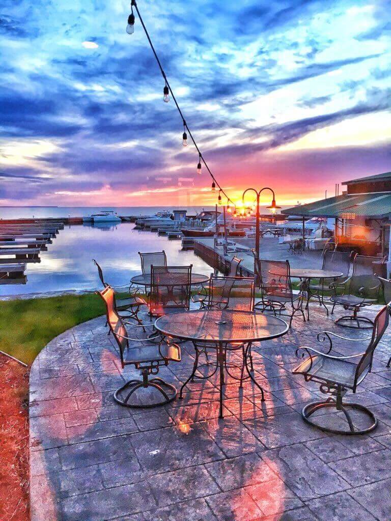 The Waterfront is a fine dining restaurant that offers sunset views on its outdoor patio in Door County. Its menu changes seasonally, and often nightly, based on what ingredients are in-season.
