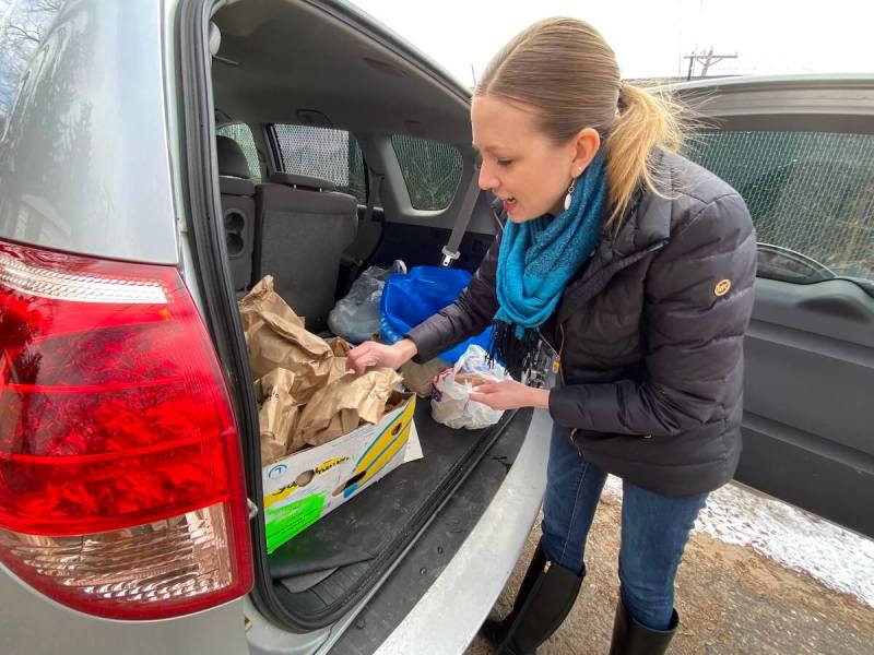 “Hi there. Thank you for doing this,” Townsend told Janssen, who was already headed back to her vehicle to bring the next food bag to another trailer park resident with school-age children.