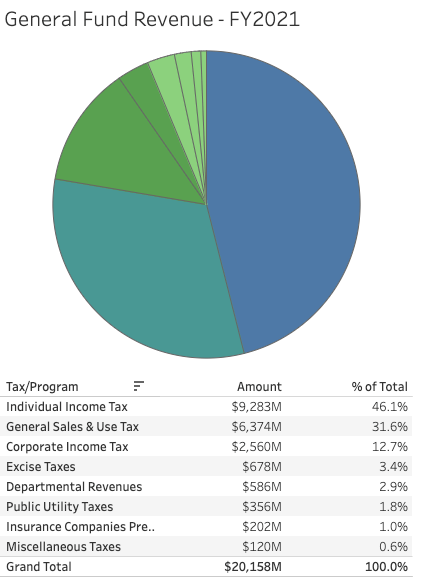 Income tax accounted for 46% of Wisconsin’s tax revenue in 2021. (Screenshot, Wisconsin Department of Revenue)