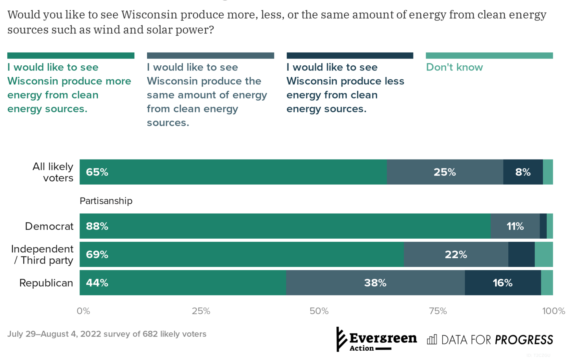 About two-thirds (65%) of all respondents said they were in favor of Wisconsin producing more of its energy from cleaner sources like wind and solar power, including 44% of Republicans.
