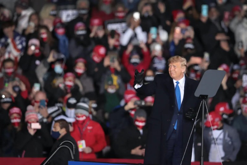 Trump won Wisconsin in 2016 by fewer than 23,000 votes. As the temperature dropped to just above freezing and darkness fell, the crowd waited as Trump arrived more than an hour late to his third rally of the day.