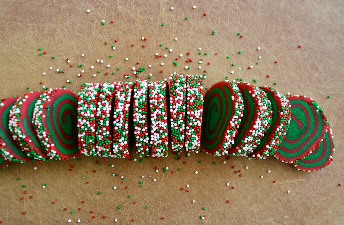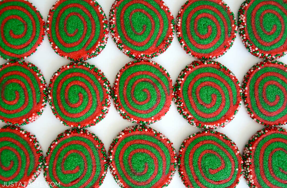 If you’re unfamiliar, pinwheel cookies are buttery, slice-and-bake sugar cookies that look more complicated than they are! Holiday versions usually swirl red and green together, but pinwheels can be made with a mix of vanilla and chocolate dough other times of year.